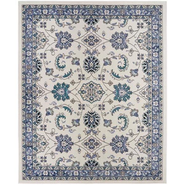 Essentials Ivory Blue 6 ft. x 9 ft. Center medallion Traditional Area Rug