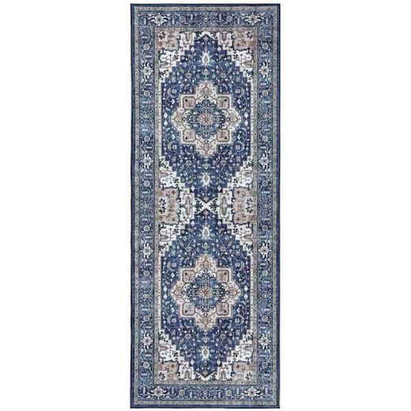 Fulton Navy Ivory 2 ft. x 5 ft. Center medallion Traditional Runner Area Rug