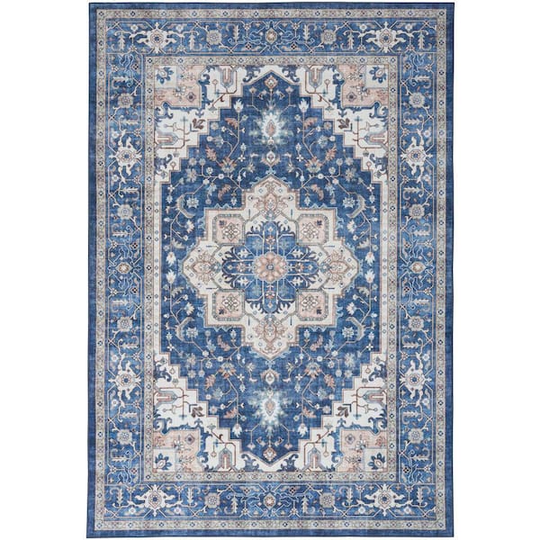 Fulton Navy Ivory 8 ft. x 10 ft. Center medallion Traditional Area Rug