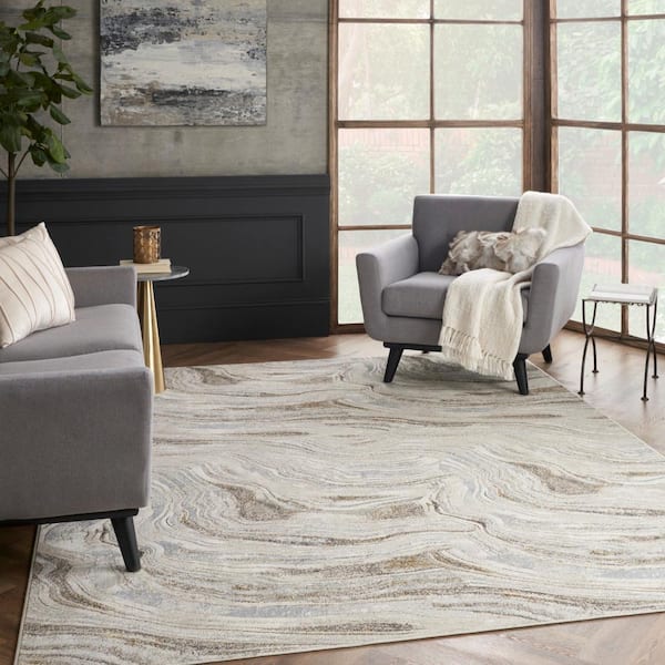 Glam Grey Gold 9 ft. x 12 ft. Abstract Contemporary Area Rug