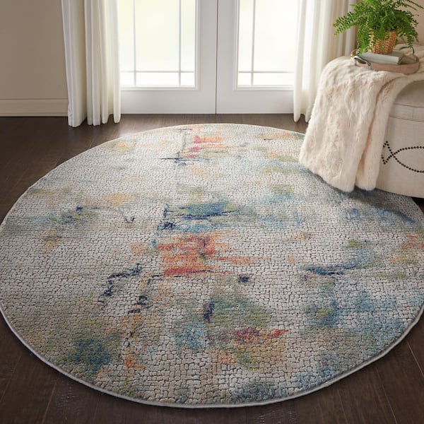 • White Multicolor Polypropylene round rug with 1/2 inch thickness