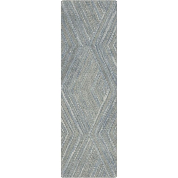 Graceful Blue 2 ft. x 8 ft. Geometric Contemporary Runner Area Rug
