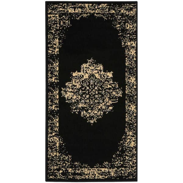 Grafix 2 ft. x 4 ft. Black Vintage Indoor Kitchen Area Rug