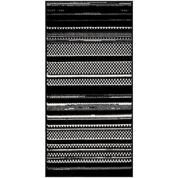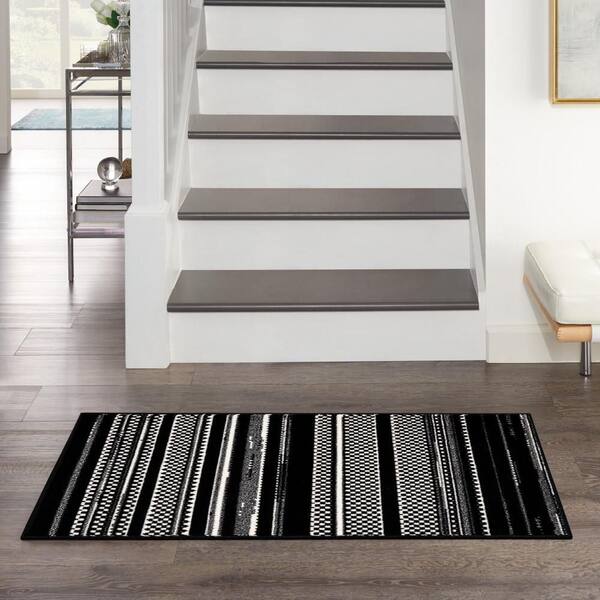 Grafix Black White doormat 2 ft. x 4 ft. Abstract Contemporary Area Rug