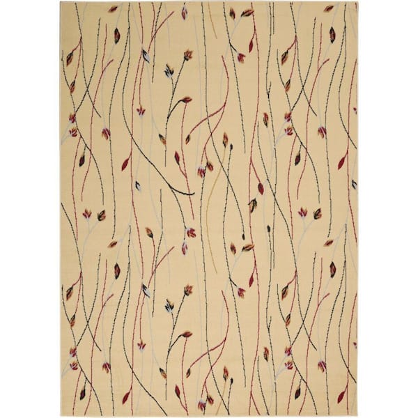 Grafix Cream 5 ft. x 7 ft. Floral Contemporary Area Rug