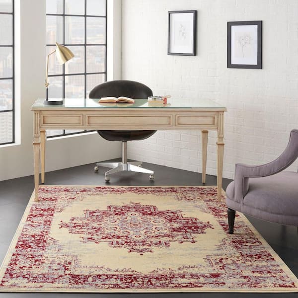 Grafix Cream/Red 6 ft. x 9 ft. Persian Medallion Transitional Area Rug