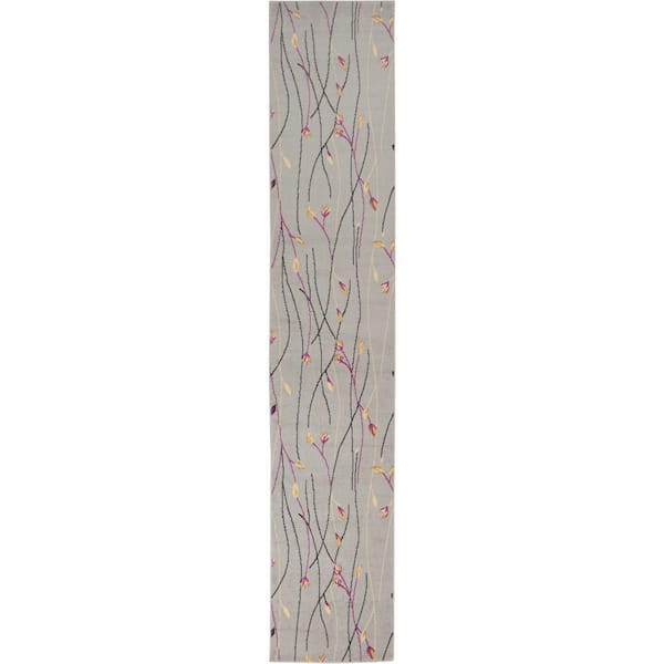 Grafix Grey 2 ft. x 12 ft. Floral Contemporary Kitchen Runner Area Rug