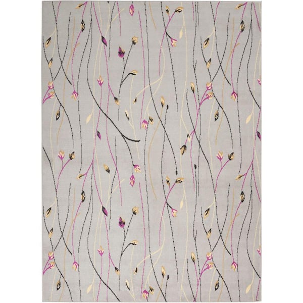 Grafix Grey 5 ft. x 7 ft. Floral Contemporary Area Rug