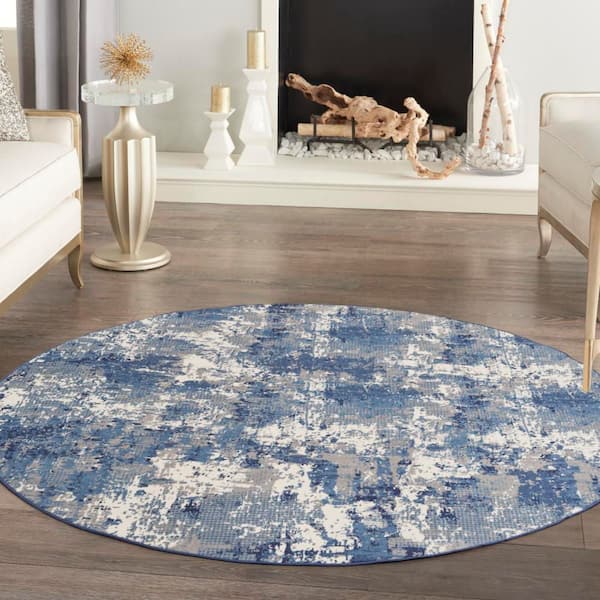 Grafix Navy Blue 8 ft. x 8 ft. Abstract Contemporary Round Area Rug