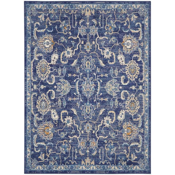 Grafix White/Navy 5 ft. x 7 ft. Persian Vintage Area Rug