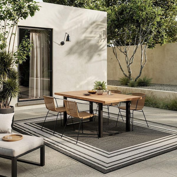 Horizon Indoor/Outdoor Black 10 ft. x 14 ft. Bordered Contemporary Area Rug