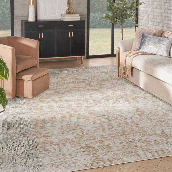 Iliana Ivory Grey with Gold Accents 8 ft. x 10 ft. Striated Contemporary Area Rug