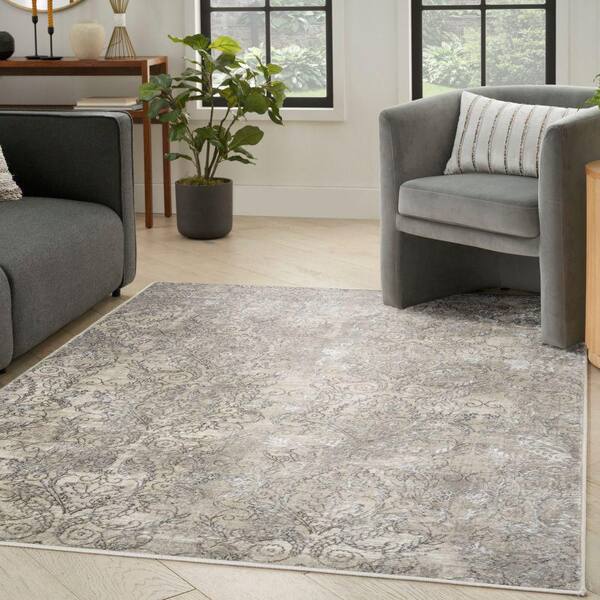 Iliana Light Grey 5 ft. x 7 ft. Damask Contemporary Area Rug