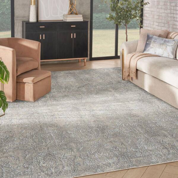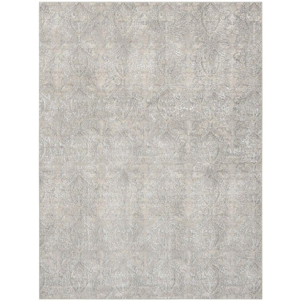Iliana Light Grey 8 ft. x 10 ft. Damask Contemporary Area Rug