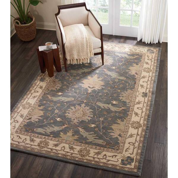 India House Blue 7 ft. x 10 ft. Bordered Traditional Area Rug