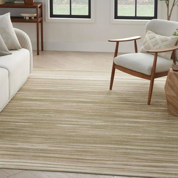Jubilant Green Ivory 8 ft. x 10 ft. Stripes Contemporary Area Rug