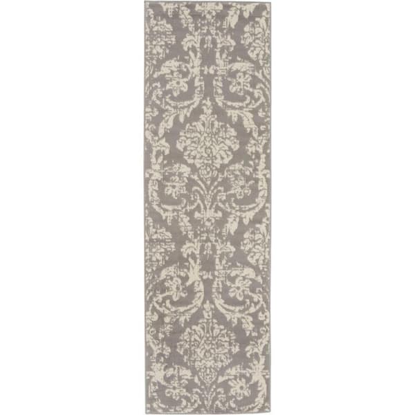 Jubilant Grey 2 ft. x 6 ft. Damask Transitional Runner Area Rug