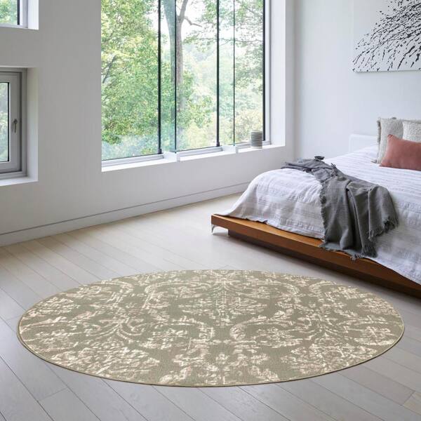 Jubilant Olive 8 ft. x 8 ft. Damask Transitional Round Area Rug