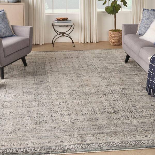 Lynx Ivory Blue 9 ft. x 11 ft. All-over design Transitional Area Rug