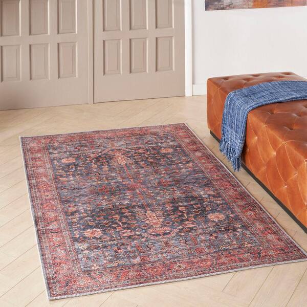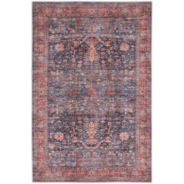 Machine Washable Brilliance Navy/Brick 4 ft. x 6 ft. Floral Traditional Area Rug