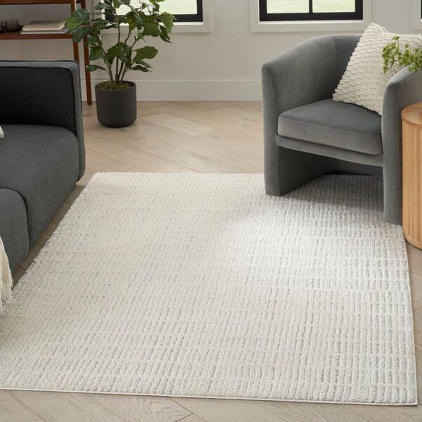 Modern Comfort Ivory Grey 5 ft. x 7 ft. Linear Contemporary Area Rug