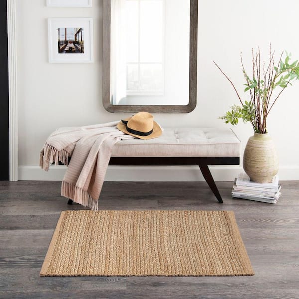 Natural Jute Natural doormat 2 ft. x 3 ft. Solid Contemporary Kitchen Area Rug