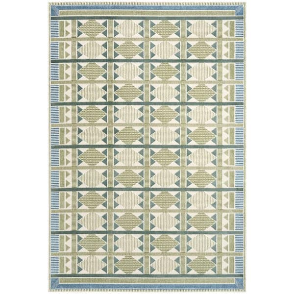 Nordic Green Blue 4 ft. x 6 ft. Geometric Contemporary Area Rug