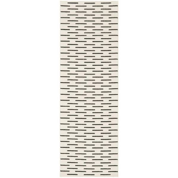 Nordic Ivory Black 2 ft. x 6 ft. All-over design Contemporary Runner Area Rug
