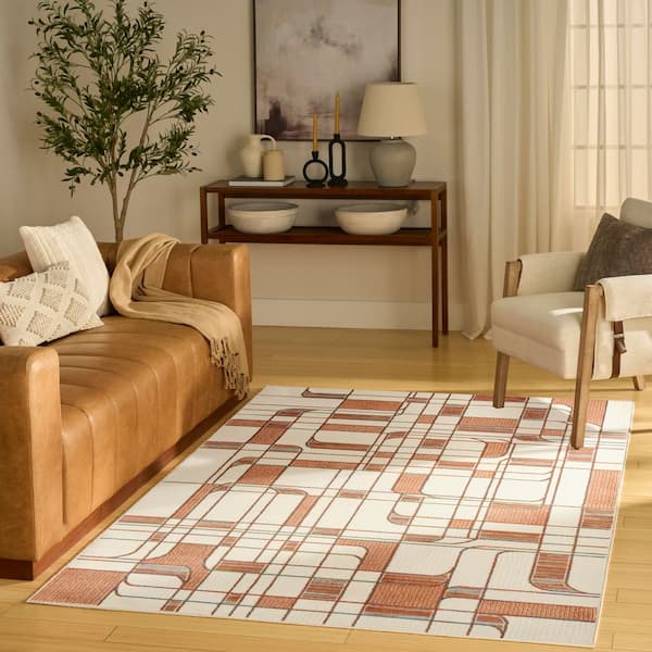 Nordic Ivory Rust 5 ft. x 7 ft. Abstract Contemporary Area Rug