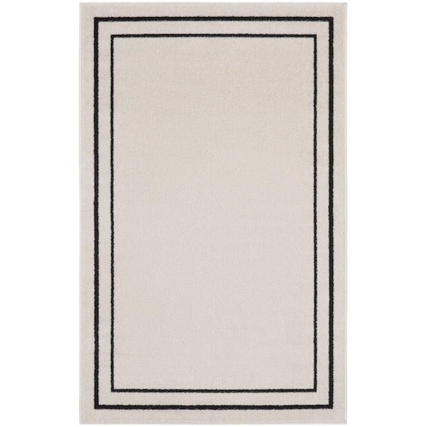 Nourison Essentials Ivory/Black 3 ft. x 5 ft. Solid Contemporary Area Rug
