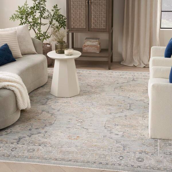 Nyle Light Blue 10 ft. x 14 ft. Distressed Transitional Area Rug
