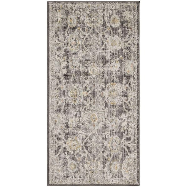 Oushak Home Charcoal 2 ft. x 4 ft. Floral Traditional Area Rug