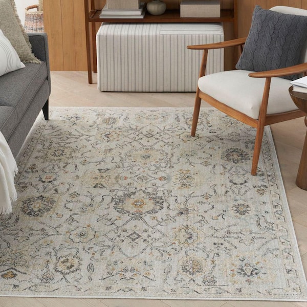 Oushak Home Grey 6 ft. x 7 ft. Floral Traditional Area Rug