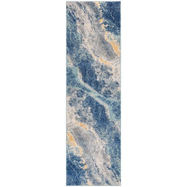 Passion Blue Multicolor 2 ft. x 6 ft. Abstract Contemporary Runner Area Rug