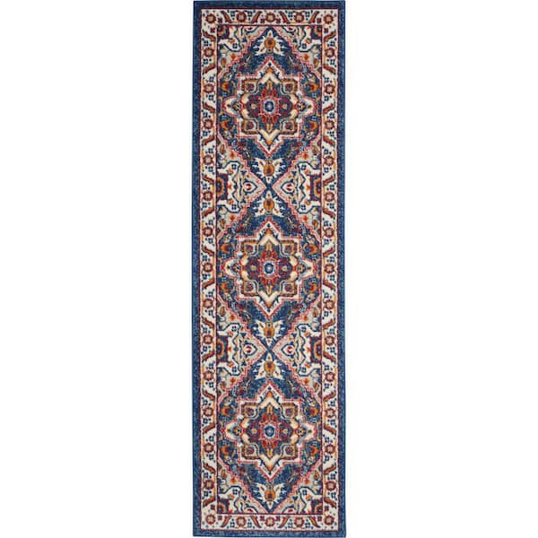 Passion Blue/Multicolor 2 ft. x 8 ft. Center medallion Traditional Kitchen Runner Area Rug