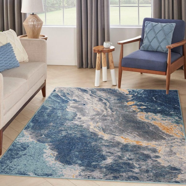 Passion Blue Multicolor 5 ft. x 7 ft. Abstract Contemporary Area Rug