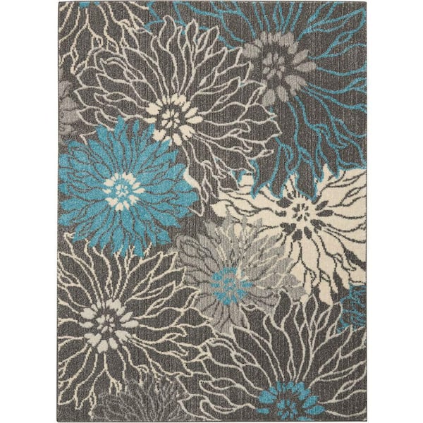 Passion Charcoal/Blue 5 ft. x 7 ft. Floral Contemporary Area Rug