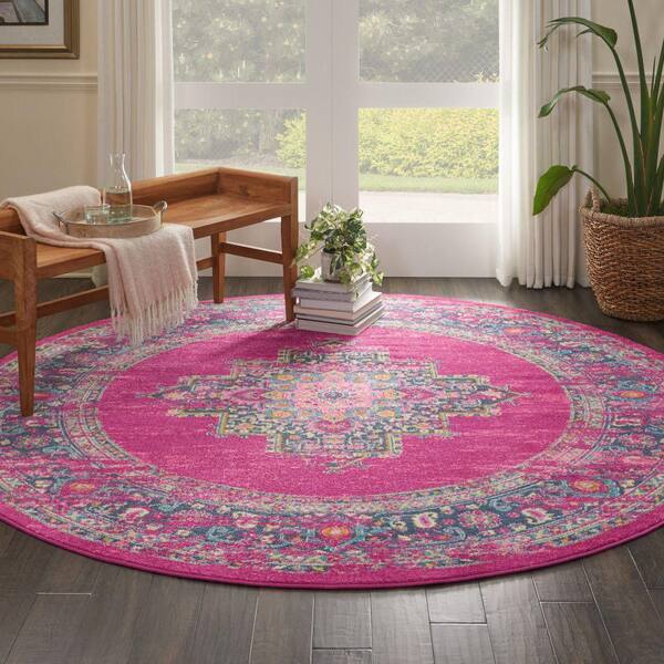 Passion Fuchsia 8 ft. x 8 ft. Bordered Transitional Round Rug