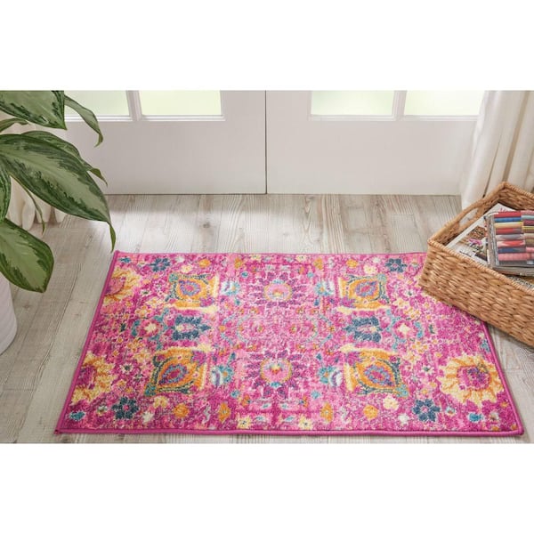 Passion Fuchsia doormat 2 ft. x 3 ft. Floral Transitional Kitchen Area Rug