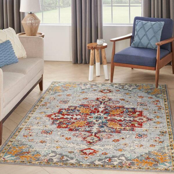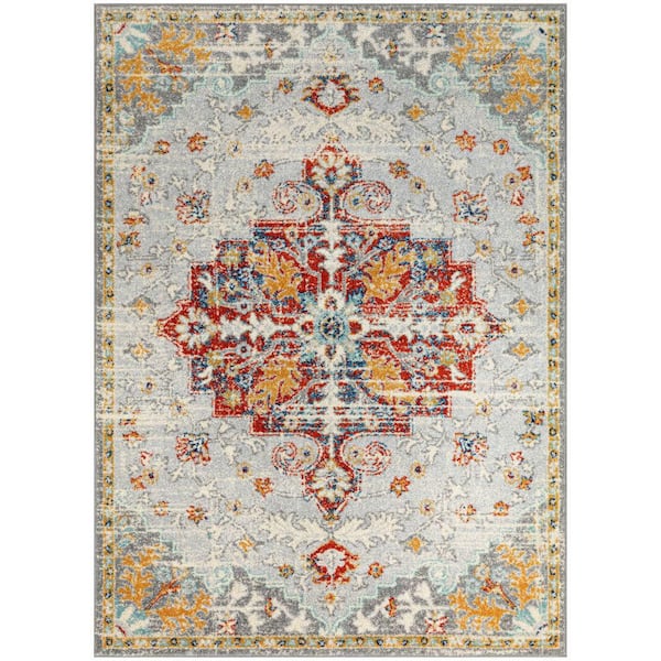 Passion Grey Multicolor 5 ft. x 7 ft. Center medallion Traditional Area Rug