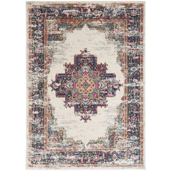 Passion Ivory Blue 5 ft. x 7 ft. Bordered Transitional Area Rug
