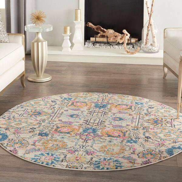 Passion Ivory/Multi 4 ft. x 4 ft. Floral Transitional Round Area Rug