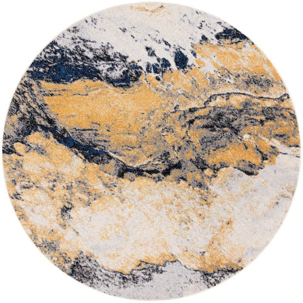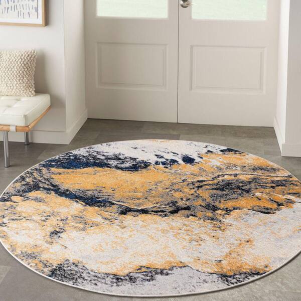 Passion Ivory Multicolor 8 ft. x 8 ft. Abstract Contemporary Round Area Rug