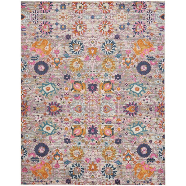 Passion Silver 8 ft. x 10 ft. Persian Floral Vintage Area Rug