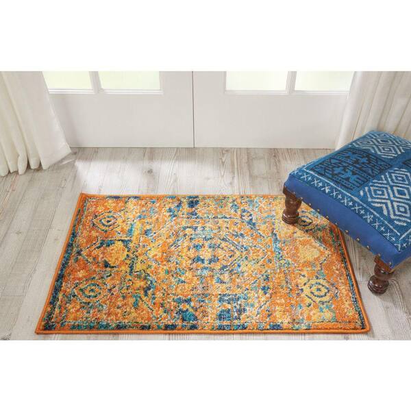 • Orange Blue Polypropylene area rug with 1/4 inch thickness