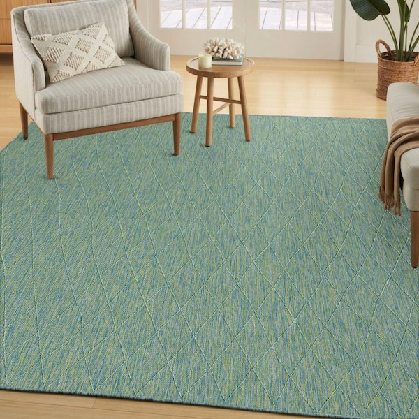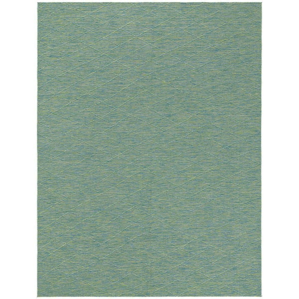 Practical Solutions Blue Green 8 ft. x 10 ft. Diamond Contemporary Area Rug