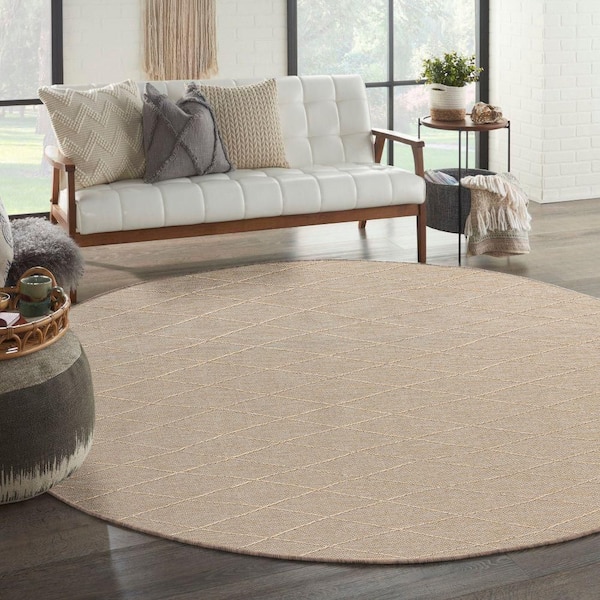 Practical Solutions Natural 8 ft. x 8 ft. Diamond Contemporary Round Area Rug