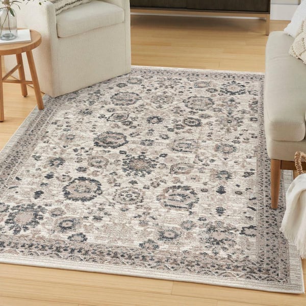 Renewed Ivory Multicolor 5 ft. x 7 ft. Distressed Traditional Area Rug
