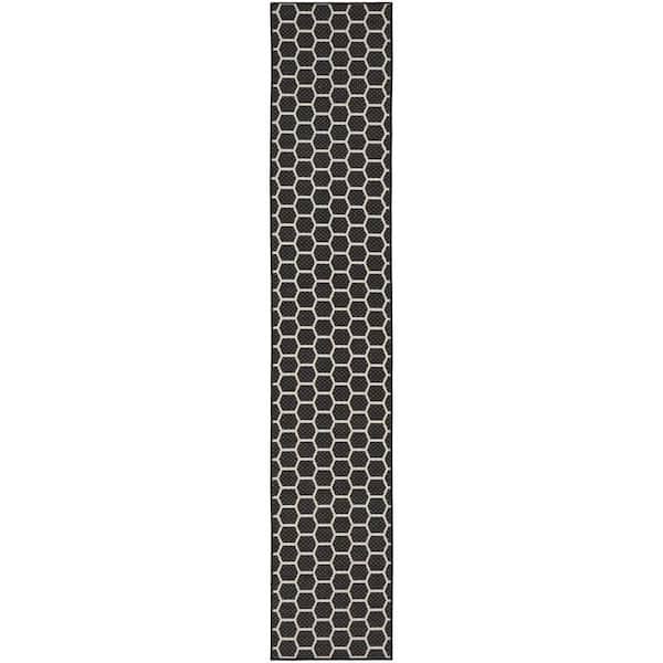 Reversible Indoor Outdoor Black 2 ft. x 12 ft. Honeycomb Contemporary Runner Area Rug