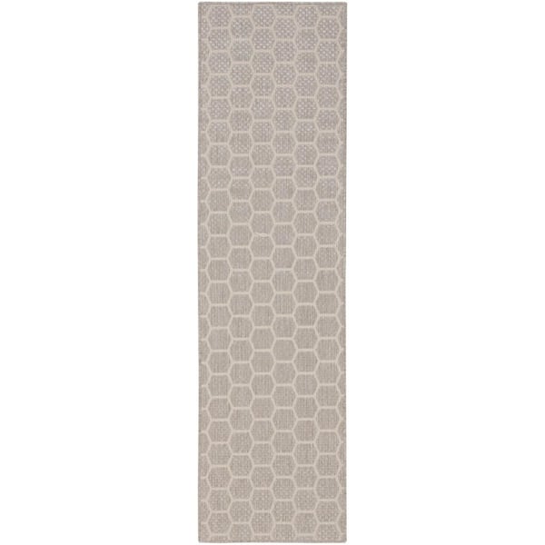 Reversible Indoor Outdoor Grey 2 ft. x 8 ft. Honeycomb Contemporary Runner Area Rug